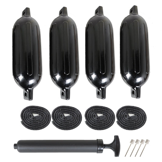 ALL-CARB 4Pcs Black Boat Fenders 6.5 by 23 Inches Vinyl Ribbed Marine Boat Bumpers