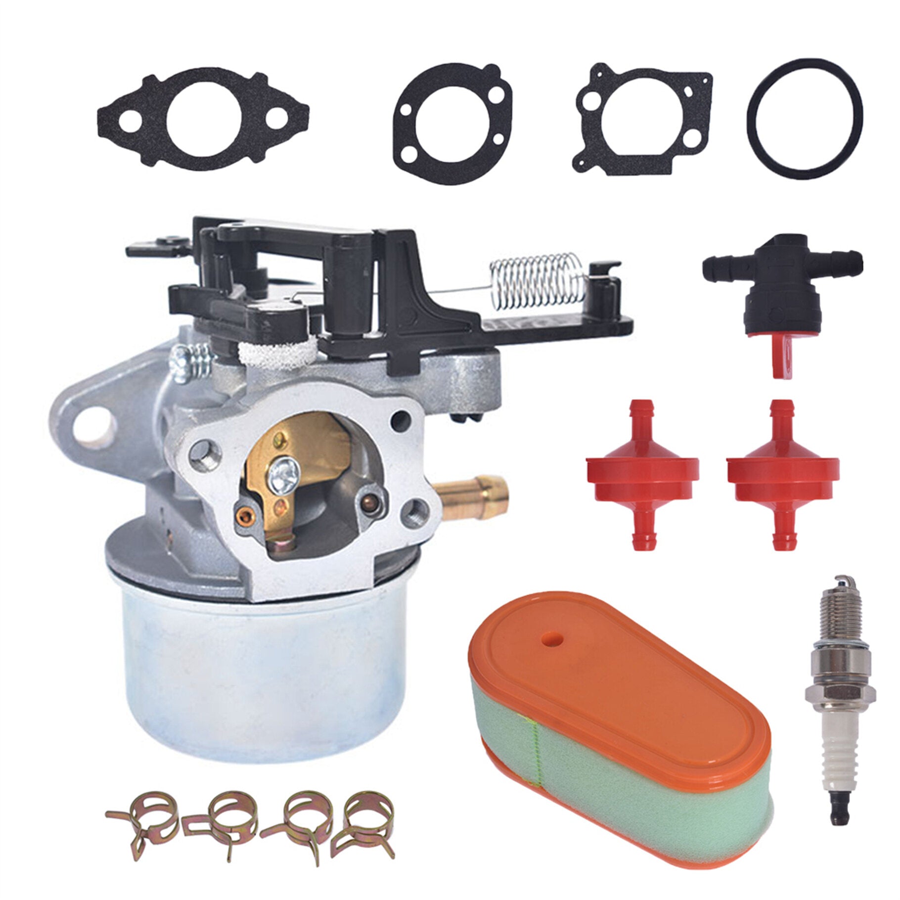 1x carburetor, 1x air filter, 1x pre filter, 1x fuel filter, 1x fuel shutoff valve, 4x clamps 1x spark plug. ?