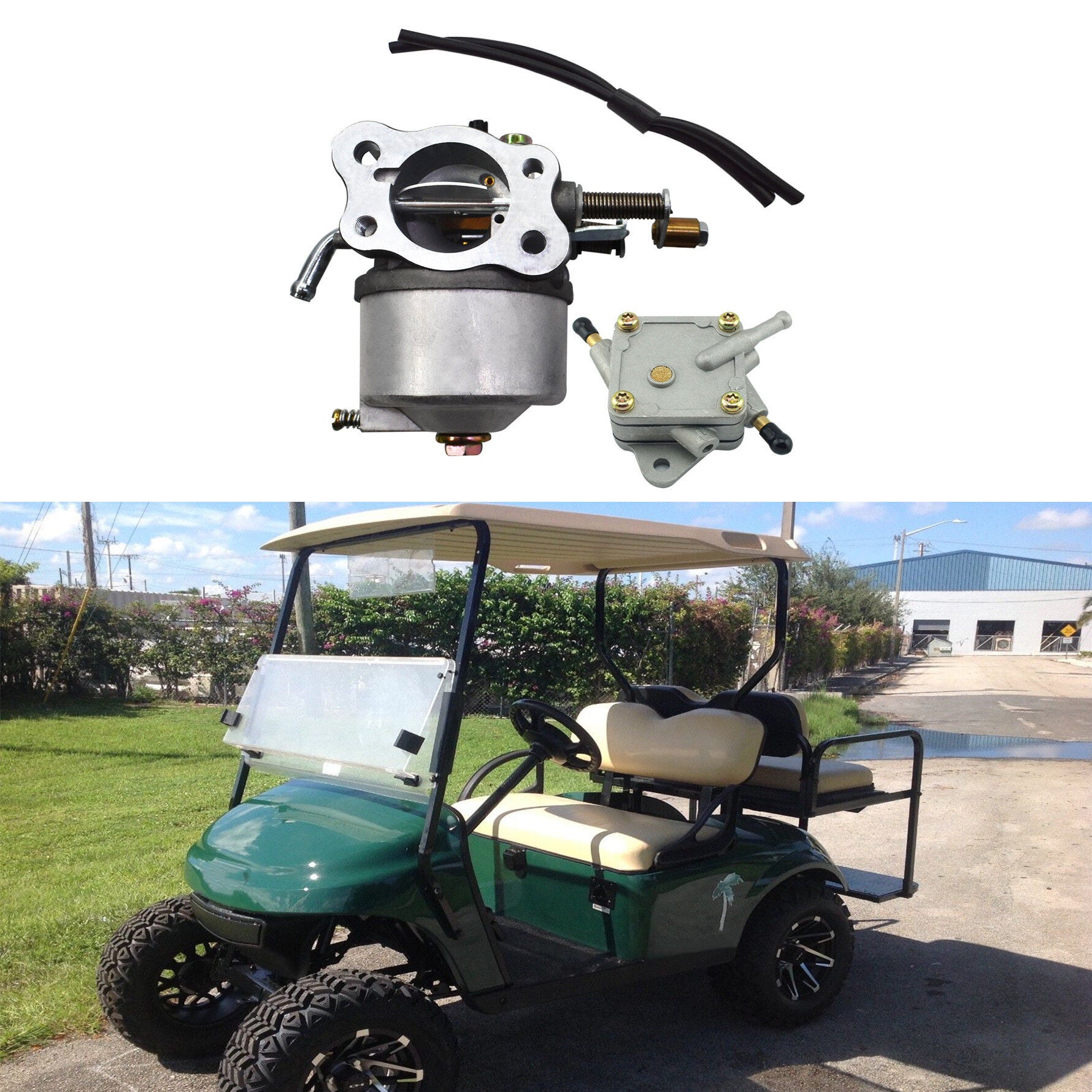 Includes: 1 carburetor, 1 Fuel Pump, 2 fuel lines