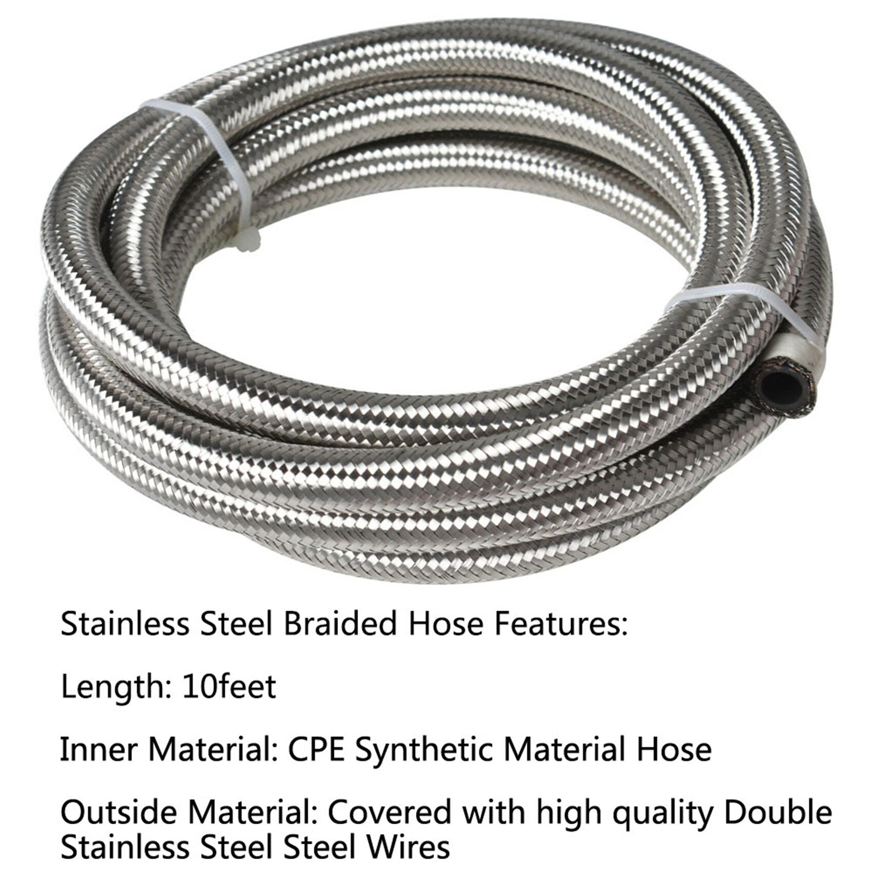 1 x 10FT 8AN Double Stainless Steel Braided+CPE Synthetic Rubber Fuel Hose