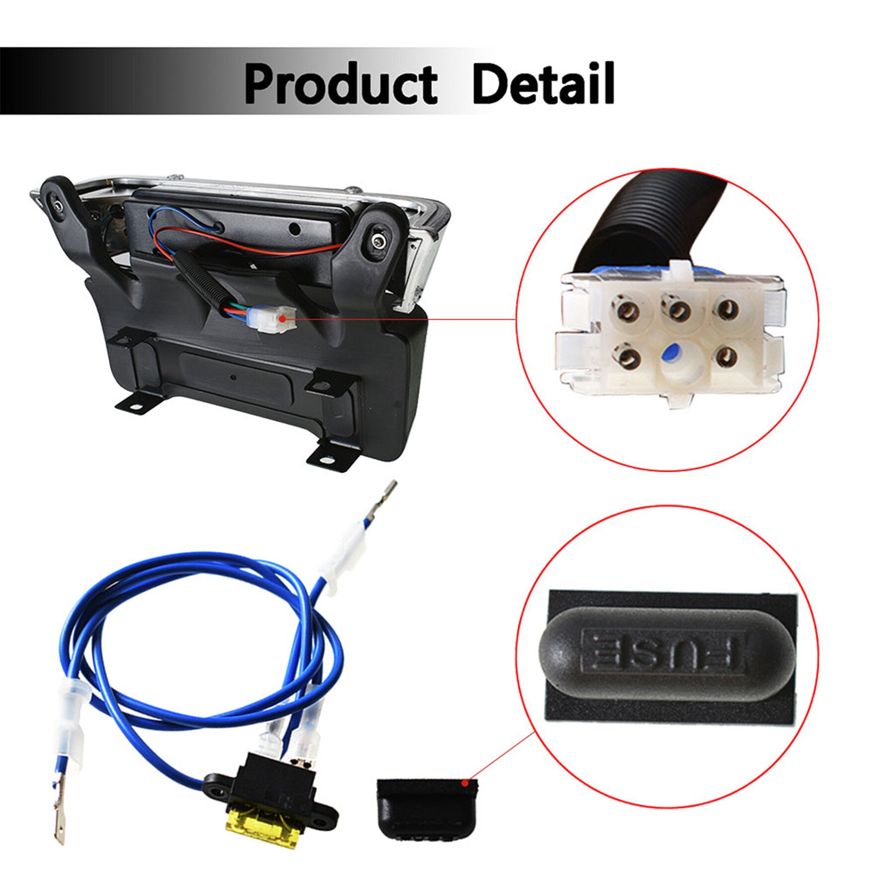 2 tail lights with adhesive bezels, 1 LED headlight bar, wiring harness and on/off switch.