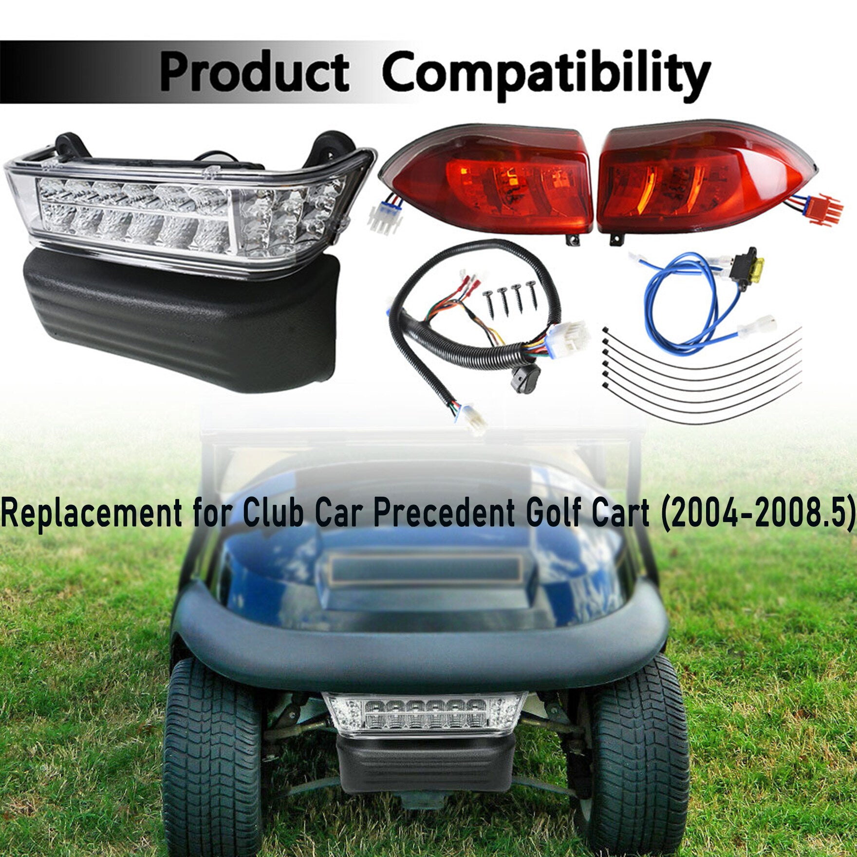 ALL-CARB LED Headlight Turn Light Tail Light Kit Replacement for 2004-2008.5 Club Car Precedent Golf carts