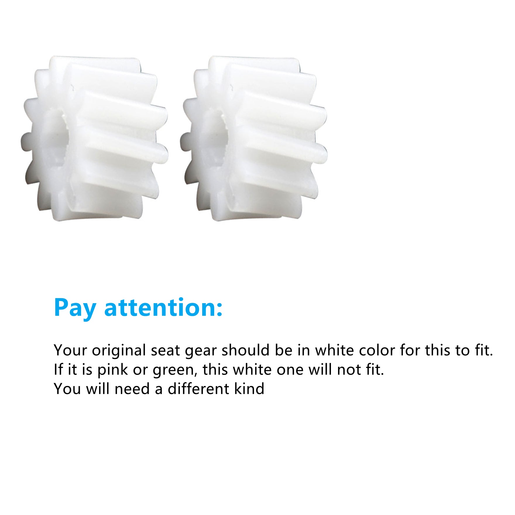 If your original seat gear is pink or green, this white one will NOT fit. You will need a different kind