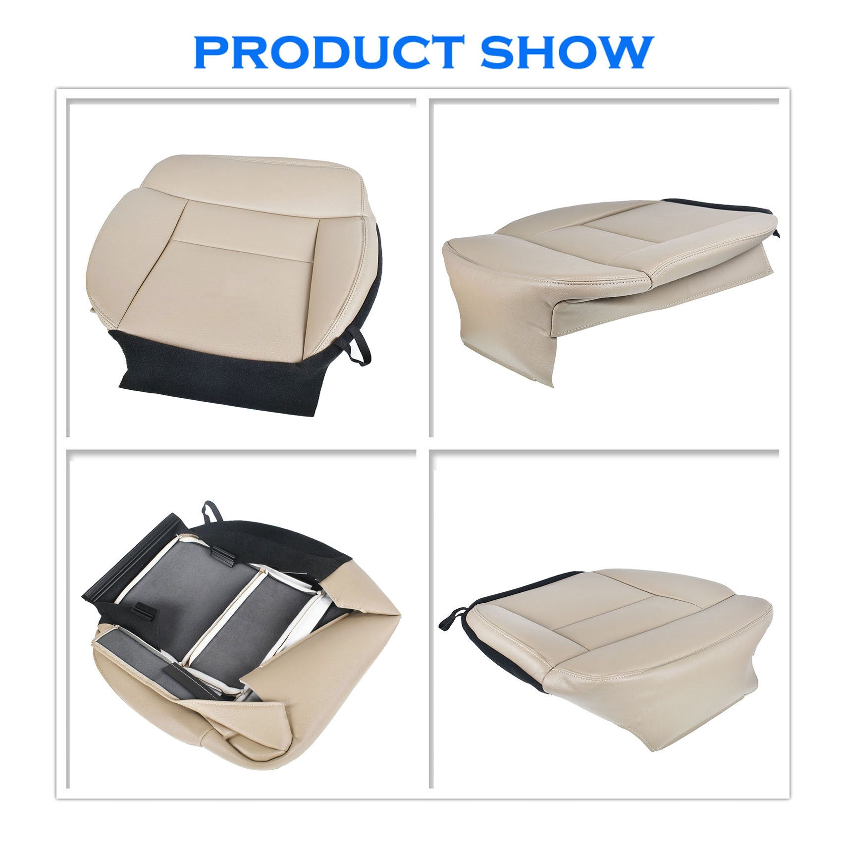 ALL-CARB Tan Leather Driver Side Bottom Seat Cover Replacement for 2004-2008 Ford F150 Lariat