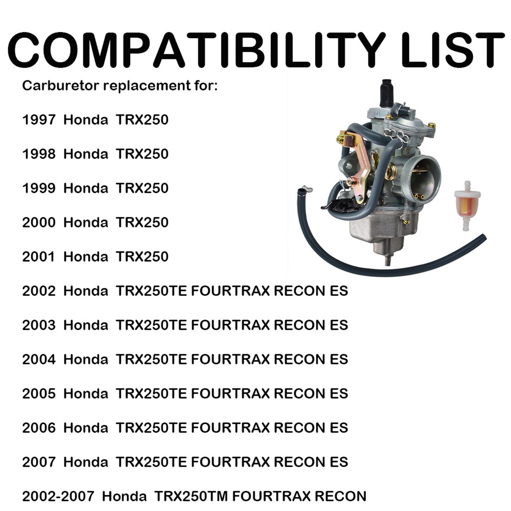Note: This carburetor doesn't fits for Honda TRX250 Recon 2001
