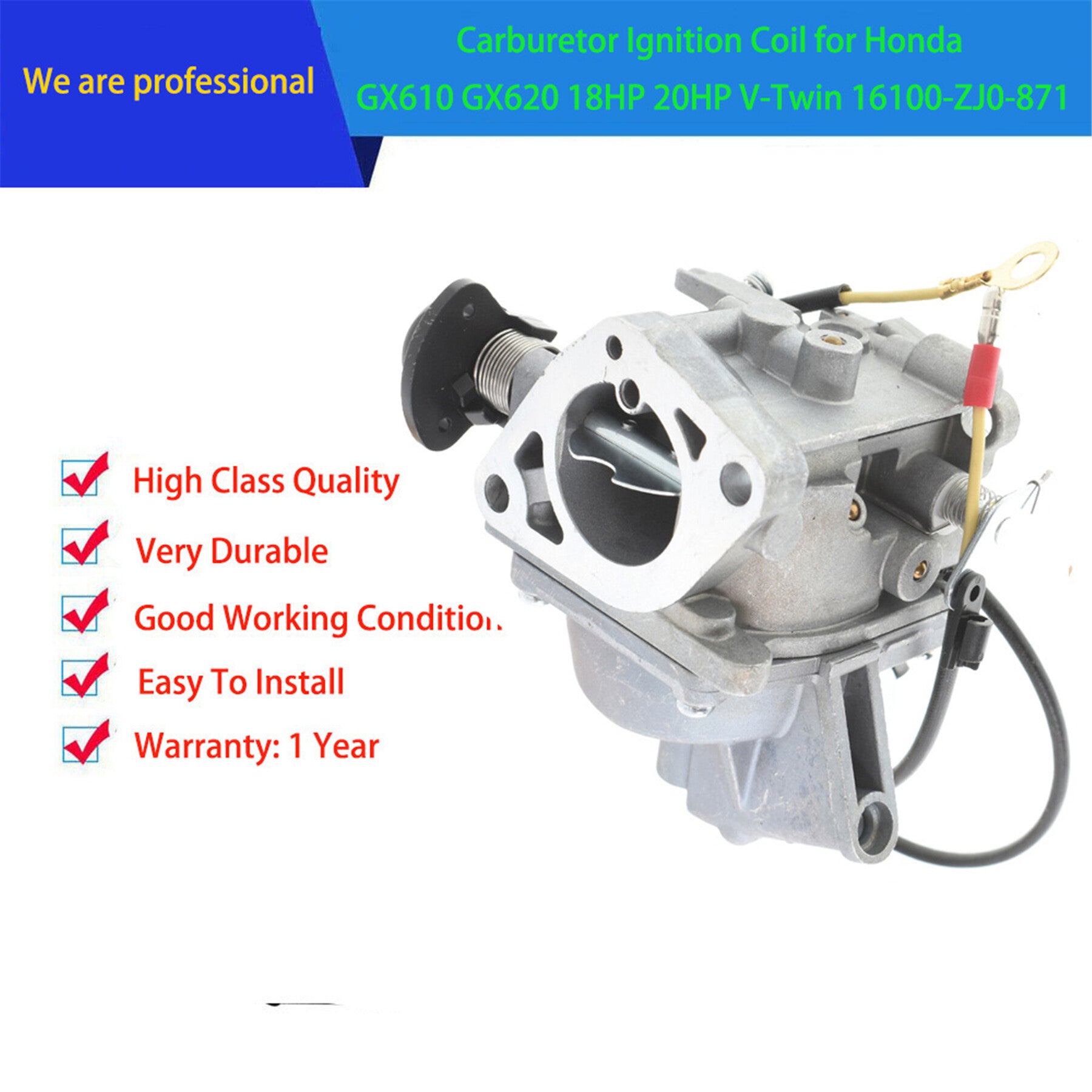 Carburetor with Ignition Coil Replacement for Honda GX610 GX620 18HP 20HP V-Twin 16100-ZJ0-871